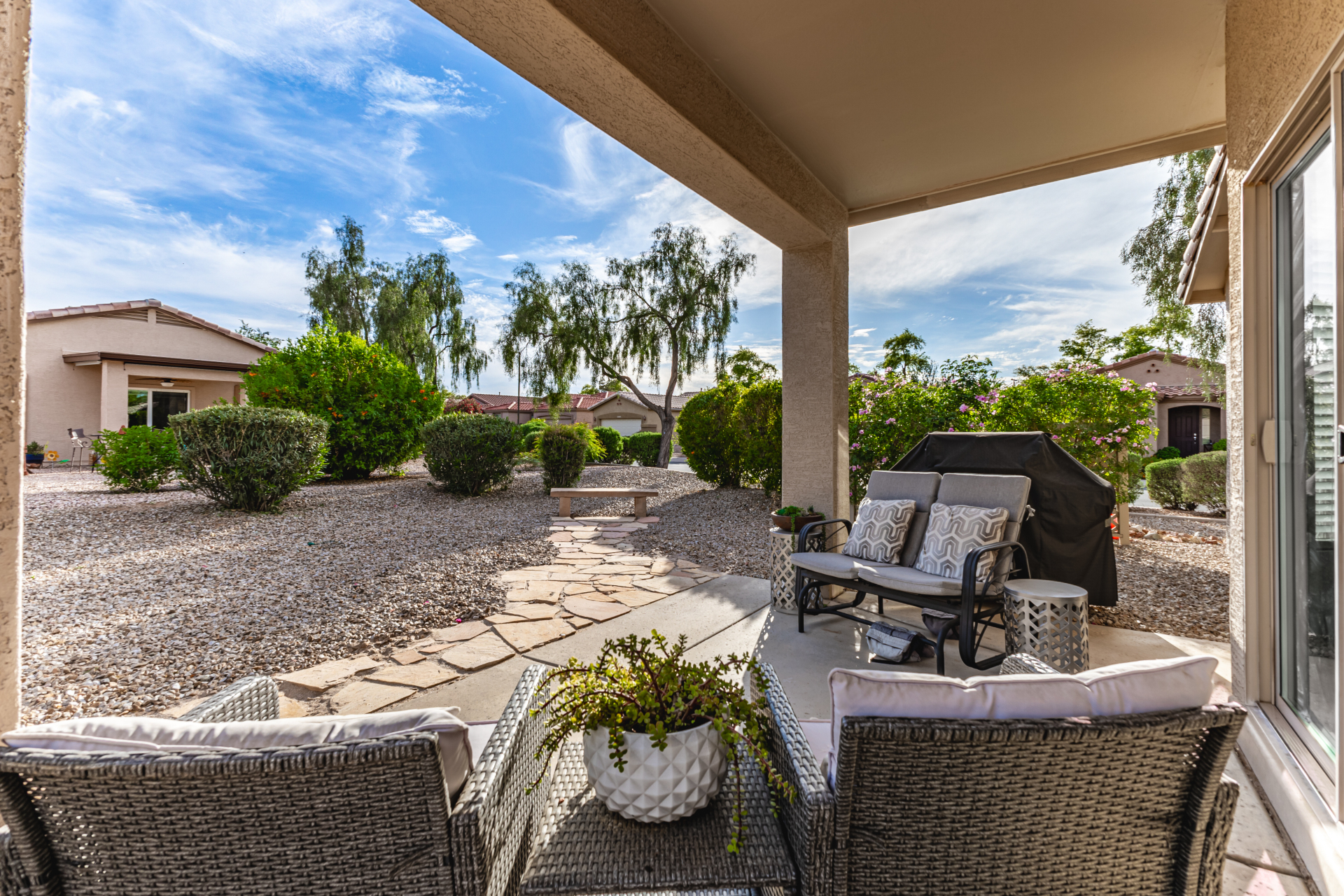 Step outside to your covered patio and private, low-maintenance backyard--ideal for morning coffee, evening conversations, and enjoying Arizona's sunshine.