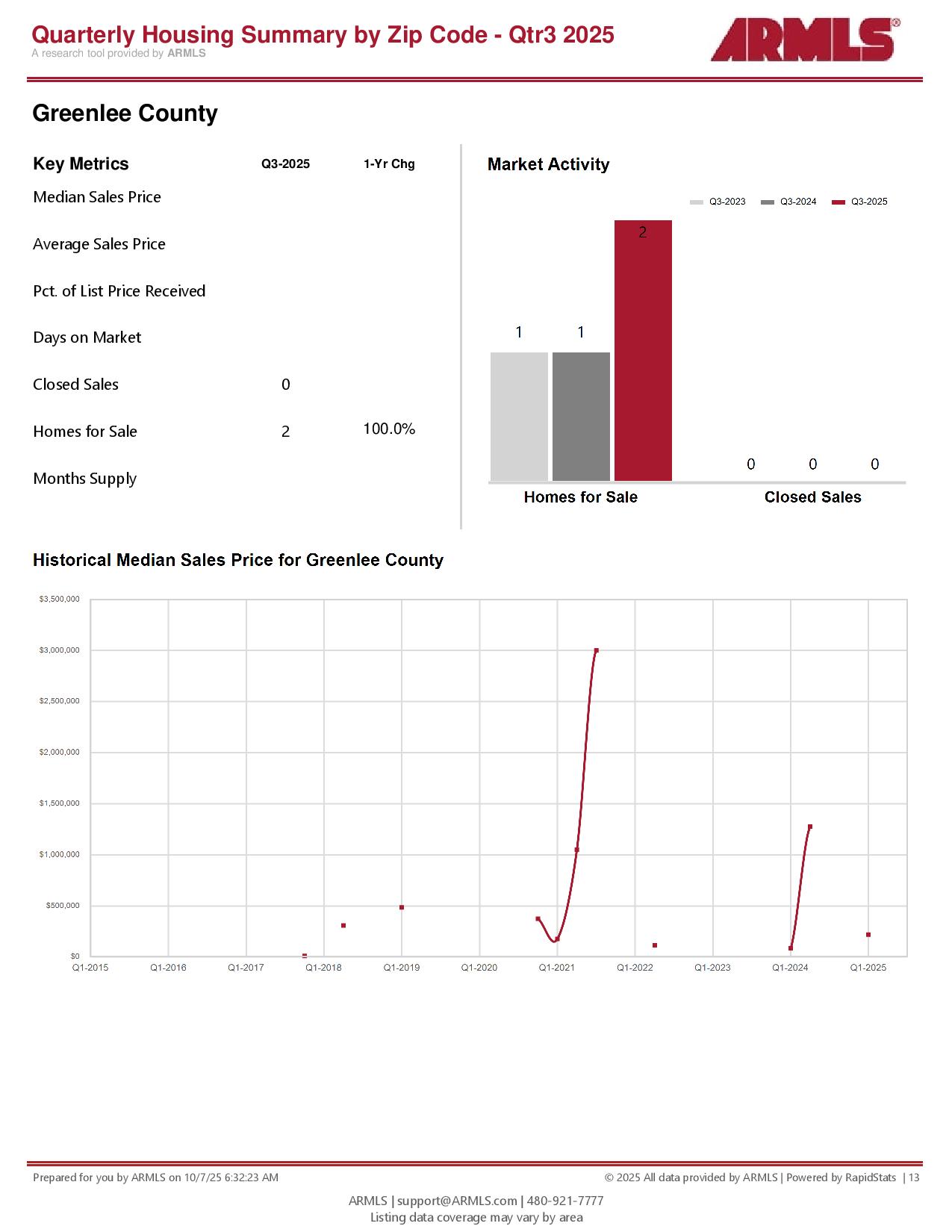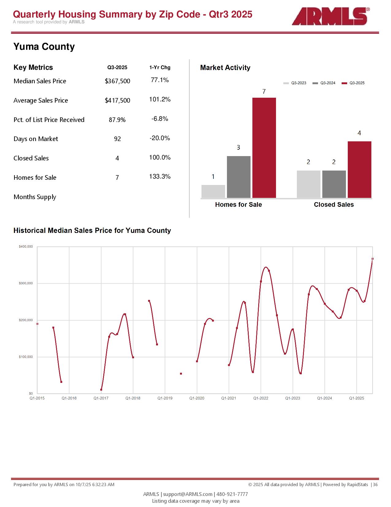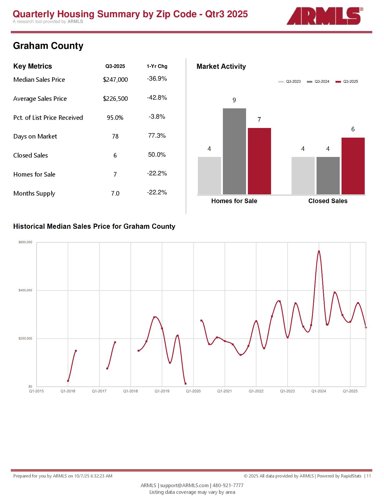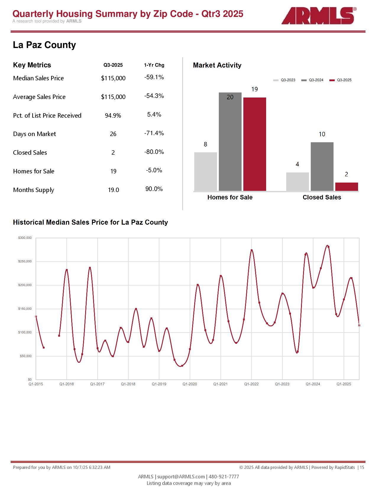 The Q3 2025 ARMLS Housing Summary shows Arizona’s real estate market reaching a steady equilibrium. Median home prices held mostly flat statewide, with Maricopa County leading the trend at a $469,000 median and $601,426 average — both nearly unchanged from last year. Closed sales rose 6.1% while listings climbed 20%, bringing months of supply to 3.8 and signaling slower absorption. Average days on market increased to 84 in Maricopa, 87 in Pinal, and 121 in Pima, reflecting a more deliberate sales pace. Pinal’s median price edged up 1.4% to $369,995, while Pima dipped 2.2% to $316,000. Northern and rural counties like Coconino and Navajo posted stronger activity, though smaller areas such as Graham and La Paz saw wider price swings due to limited volume. Overall, Q3 data indicate a normalized, balanced market where buyers enjoy more options and sellers must focus on realistic pricing and presentation.